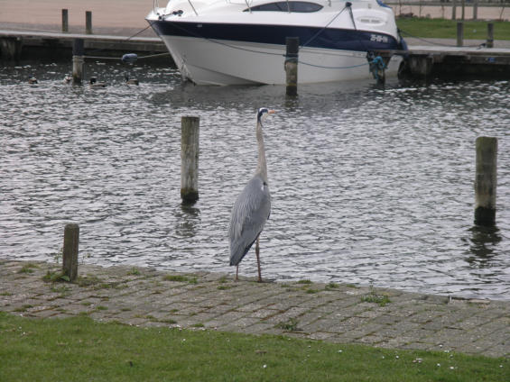 Ein Graureiher in Hafen von Lemmer direkt am Schiff...