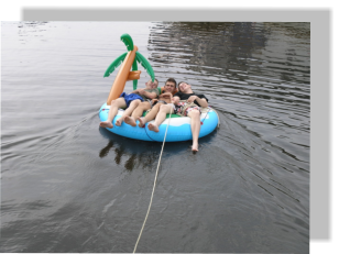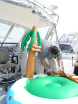 Um uns die Wartezeit zu vertreiben, blies ich die Badeinsel auf, „Coconut-Island“ war einsatzbereit! Die "Jungs" Andre, Felix und Henry nahmen