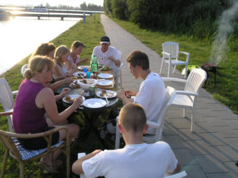 zusammen mit Stephan, Katrin und ihren Kindern ein zünftiges Grillen bis Mitternacht.