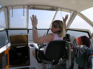 unter Deck, zu reduzieren. Welch eine Wohltat! Wir hatten vor dem Gewitter unter Deck eine Temperatur von 38 Grad Celsius. Am Steuerstand