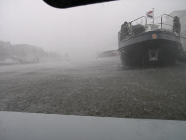 Blick aus der Achterkoje. Hagelkörner so groß wie Marzipankartoffeln, schlugen ein
