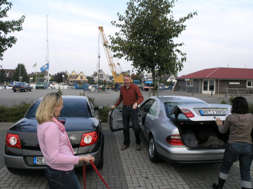 Auf dem Parkplatz des Gemeendehavens in Lemmer. Fahrzeugwechsel ist angesagt.