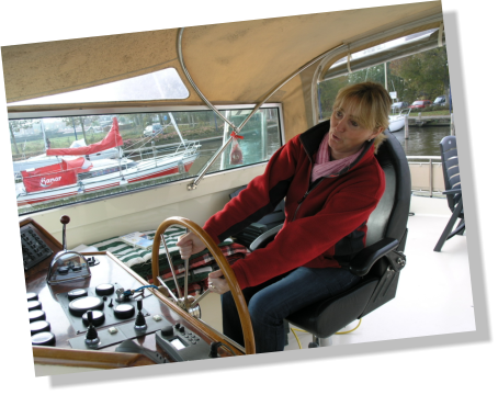 Gabi übt schon einmal rasantes Kurvenfahren mit der AQUA MAGNUS. Keine Bange, wir lagen noch fest vertäut