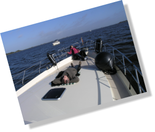 Wir verließen den Heimathafen der AQUA MAGNUS um 17 Uhr. Da wir noch viel Zeit hatten, lief die Maschine im
